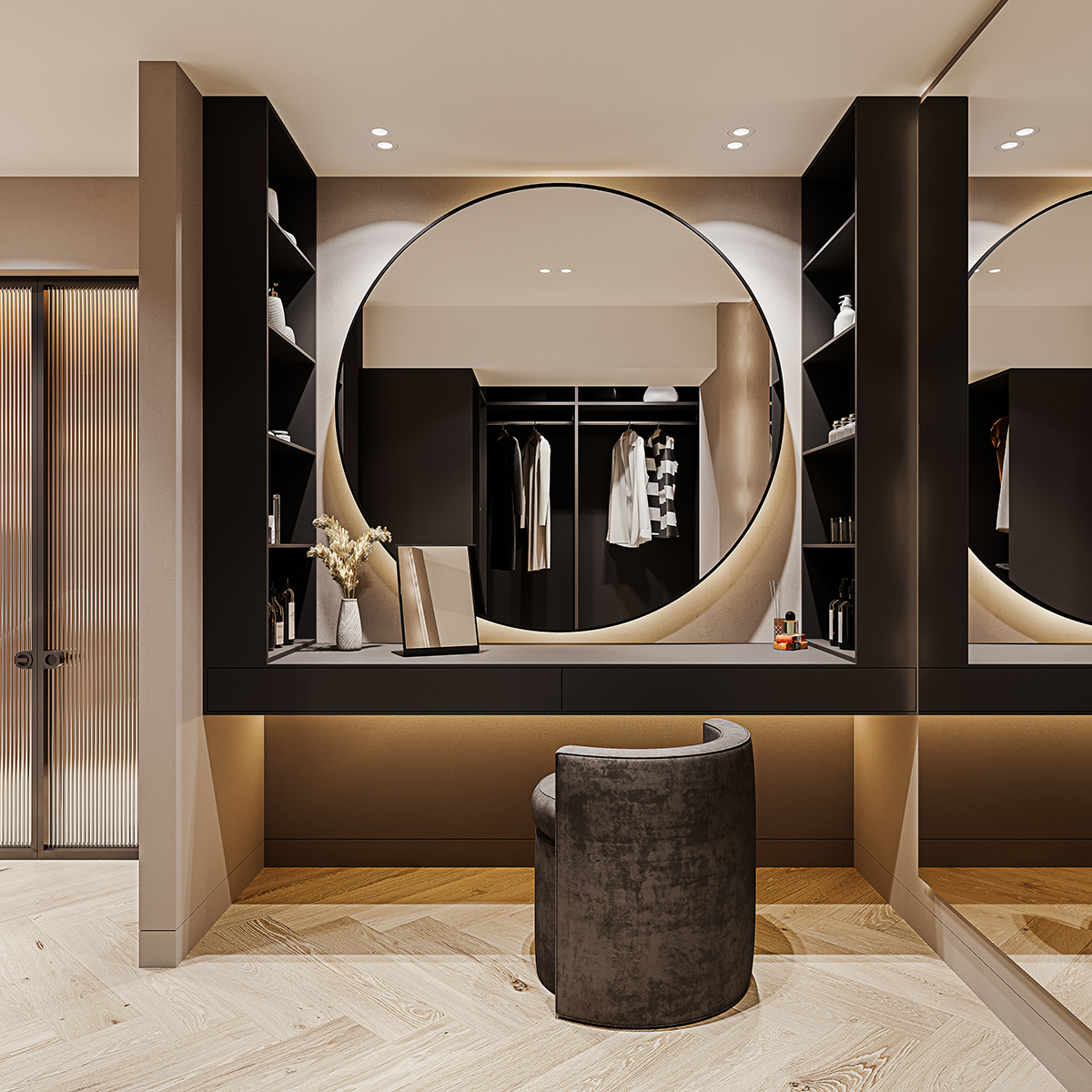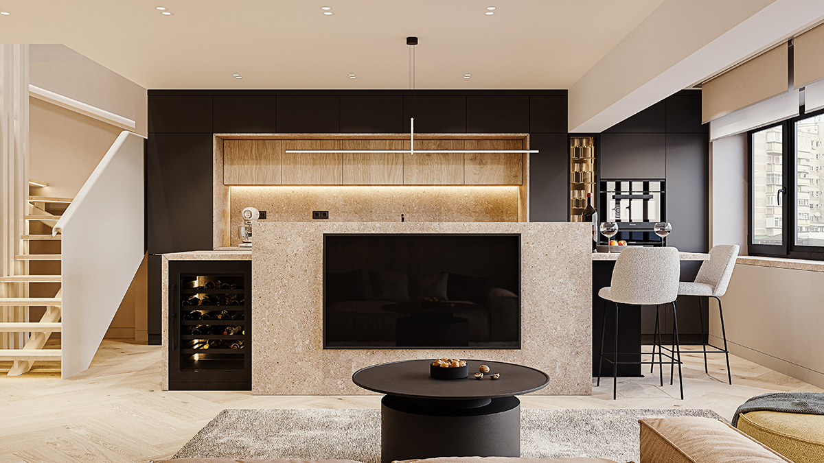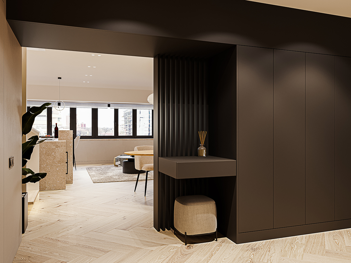 Din “Epoca de Aur” în cea contemporană. Un apartament a fost adus în armonie cu estetica, tehnologia, confortul de azi și cu dorințele celor ce-l vor locui – doi tineri faini, rafinați și cu mare atenție la toate detaliile. Pentru noi, încercările au fost nenumărate, dar n-au făcut decât să ne stimuleze și mai mult imaginația.