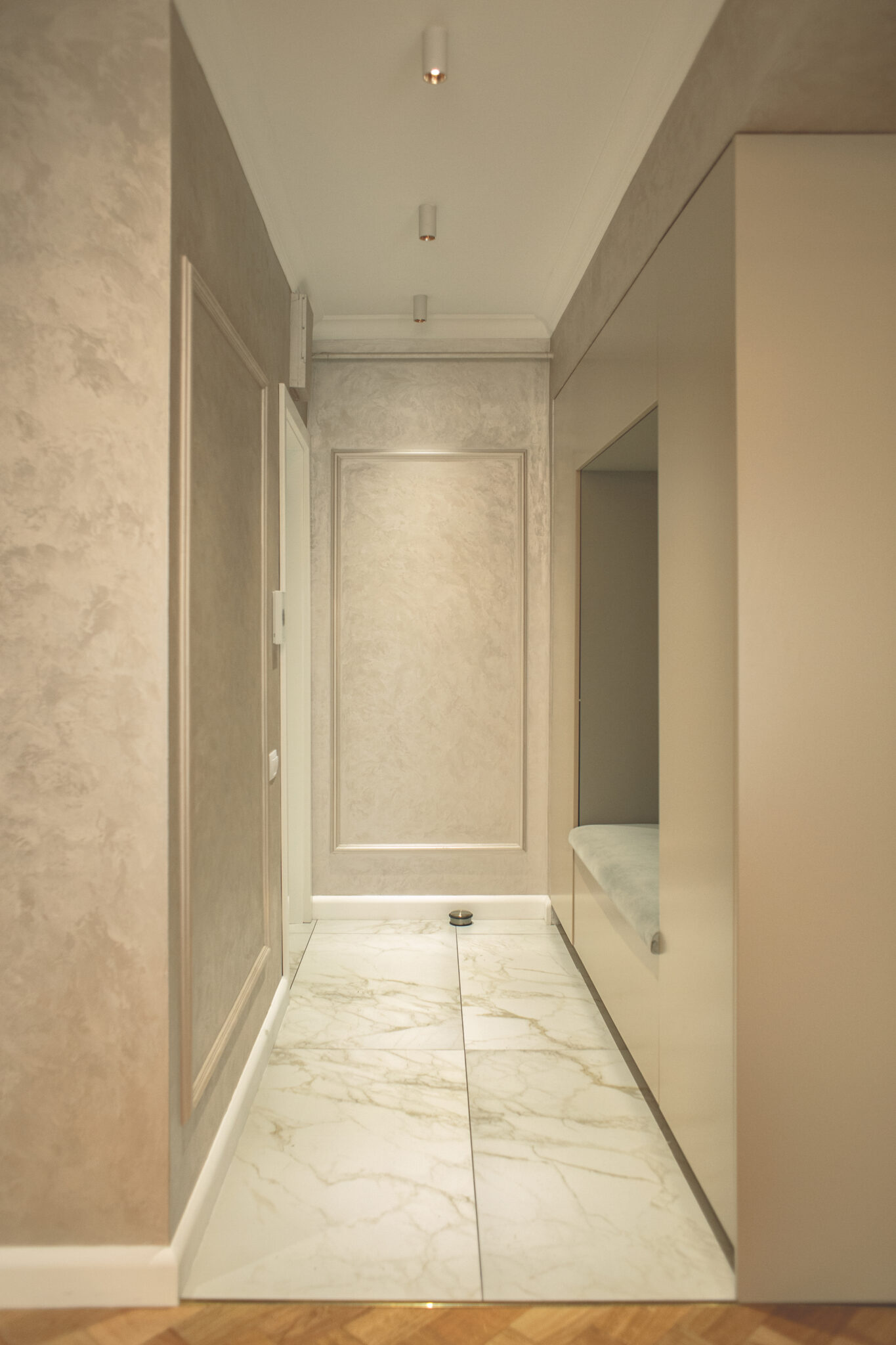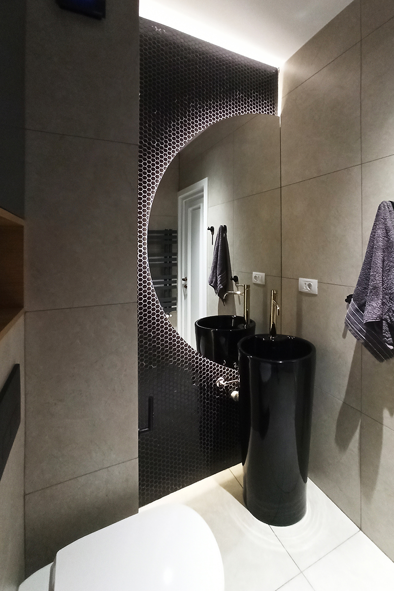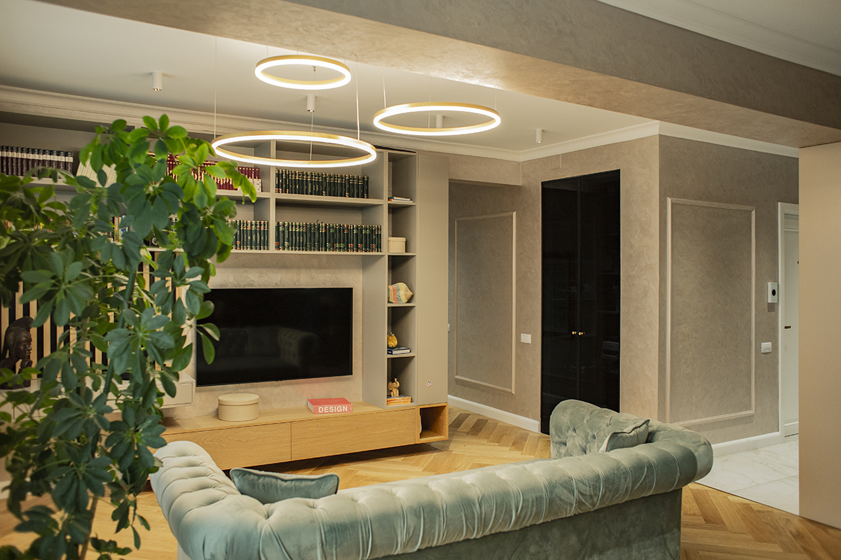 A ajuns la noi o familie care își dorea o schimbare a casei, o renovare a apartamentului. Nimic nou și totuși, pentru noi a fost ceva nou. Aceasta se identifică cu un stil pe care nu am avut prea multe ocazii să-l explorăm, mai elegant, mai plin, deloc minimalist. Schimbarea este bună, ne-a făcut să ne diversificăm limbajul designului. Am folosit texturi și materiale prețioase, finisaje atent realizate, toate combinate în tonalități cromatice armonizate.