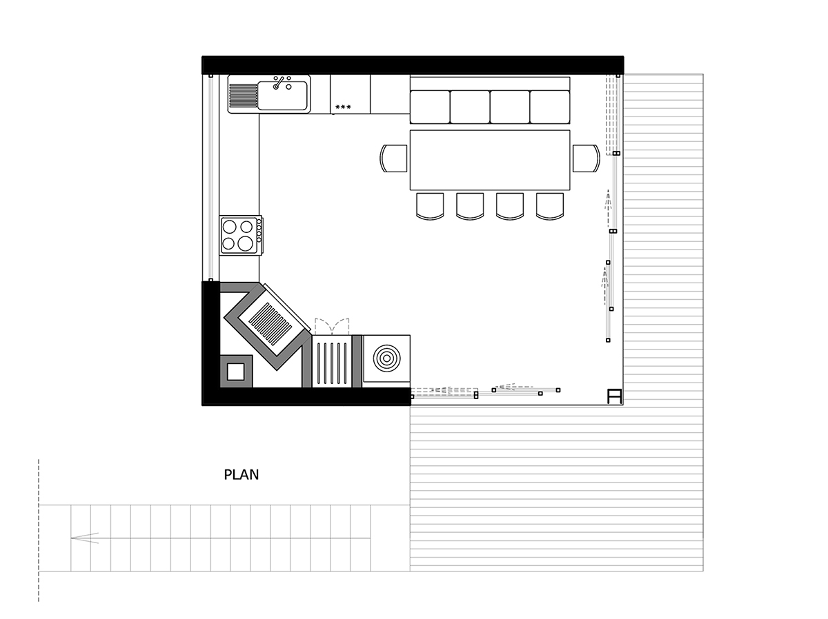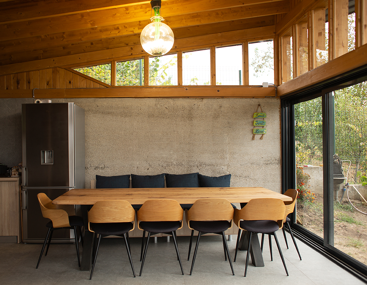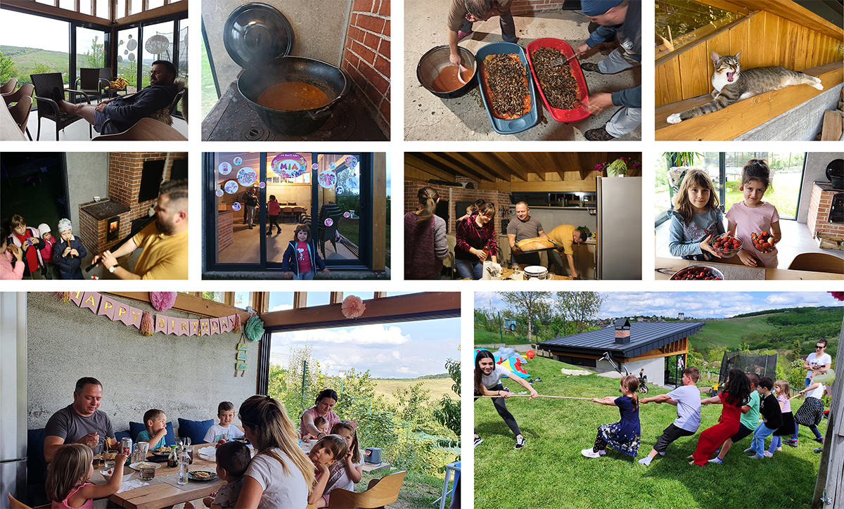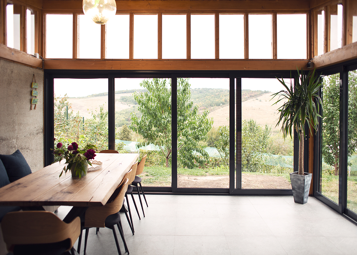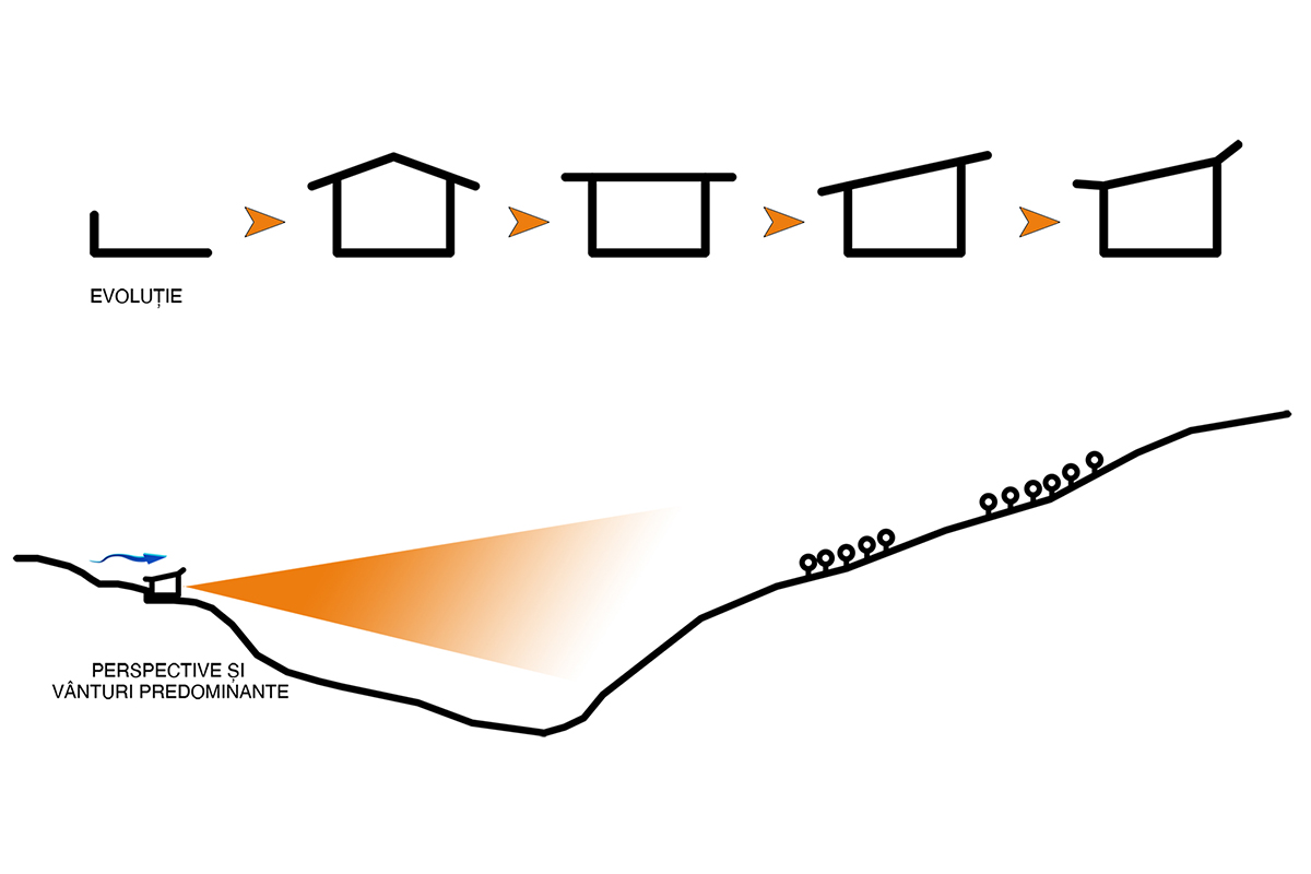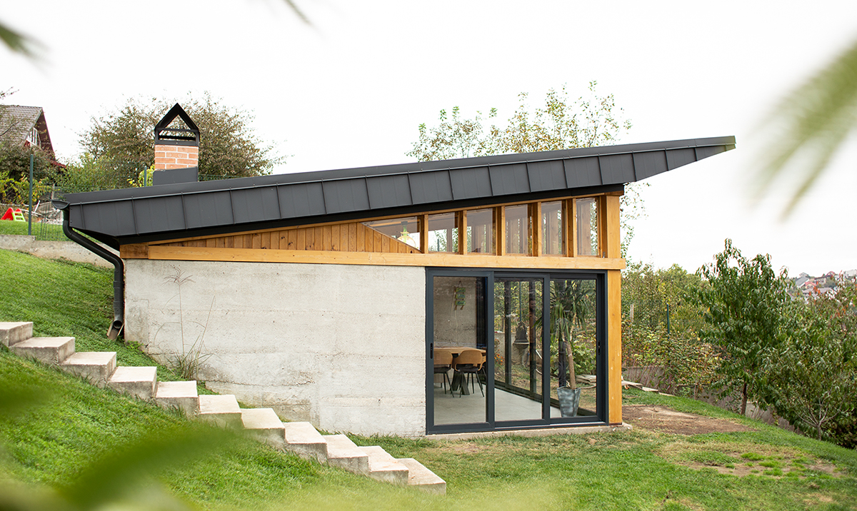 E acel pavilion în care îți petreci vara cu ferestrele deschise. E locul în care toamna se pun la cale preparatele și borcanele pentru sezonul rece, iar de sărbători miroase a copt. Mai concret, e o evoluție a bucătăriei de vară din gospodăriile tradiționale de la sat. Pe o platformă existentă și un teren în pantă, ne-am imaginat o construcție din beton aparent și lemn. Acesta urma să devină locul preferat al veselei familii pentru experimente culinare, pentru întâlniri și mese colorate cu prietenii sau pur și simplu pentru liniște, relaxare, cu toate ferestrele deschise, bucurându-se de priveliște.