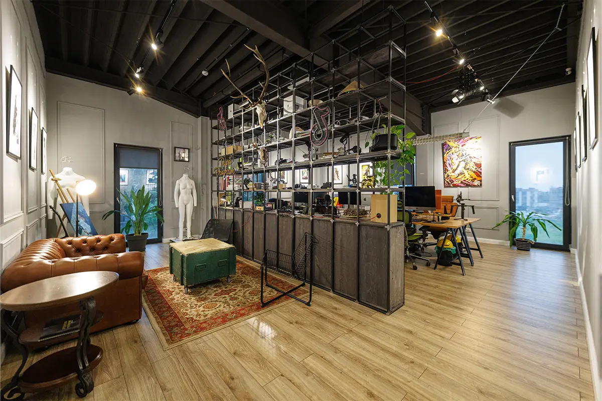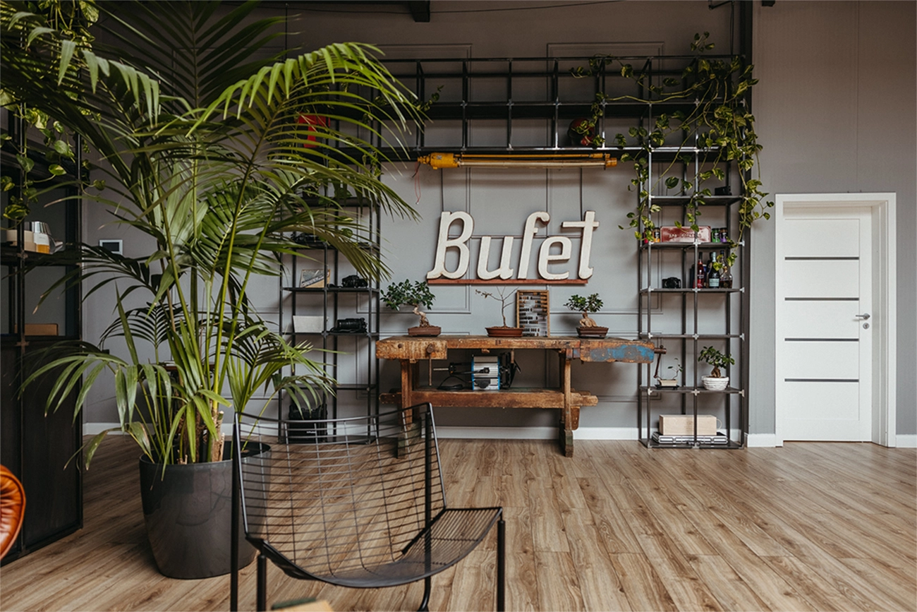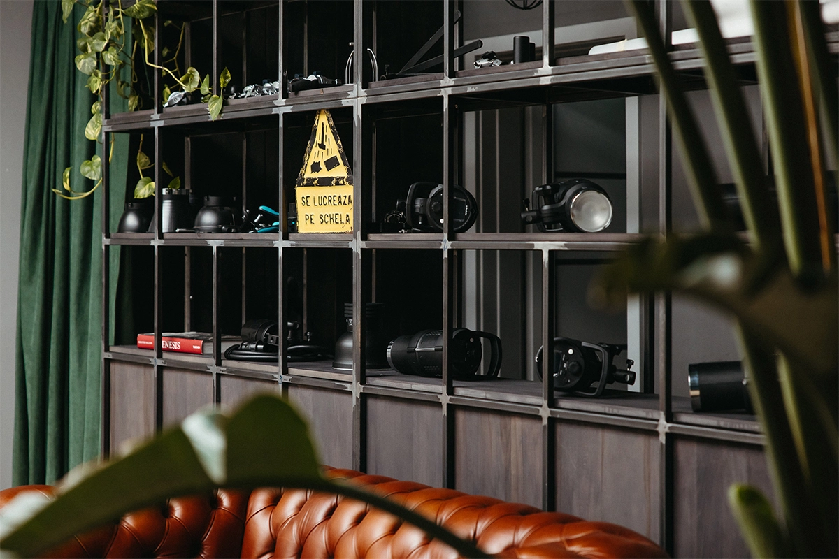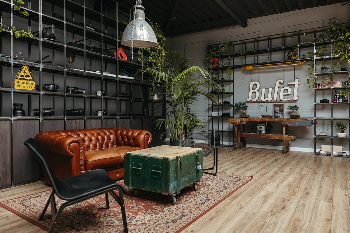Studioul cu Bufet, LLUM Studio, este un spațiu pentru oameni cu idei, un spațiu de creație și socializare, mai ales pentru cei interesați de aria foto-video. Am rezonat din start cu oamenii de aici, ceea ce a făcut ca ideea generatoare să apară cât ai clipi. Tema a presupus amenajarea unui spațiu, acesta fiind compus dintr-o încăpere amplă, ce beneficiază și de lumină zenitală, studioul foto propriu zis și o a doua încăpere de lucru, pentru postprocesarea materialelor foto-video.