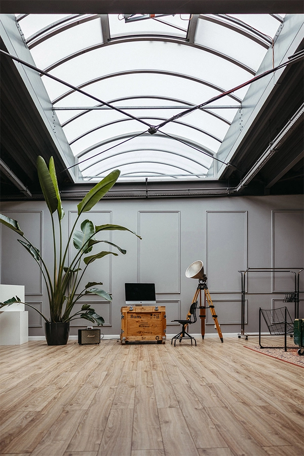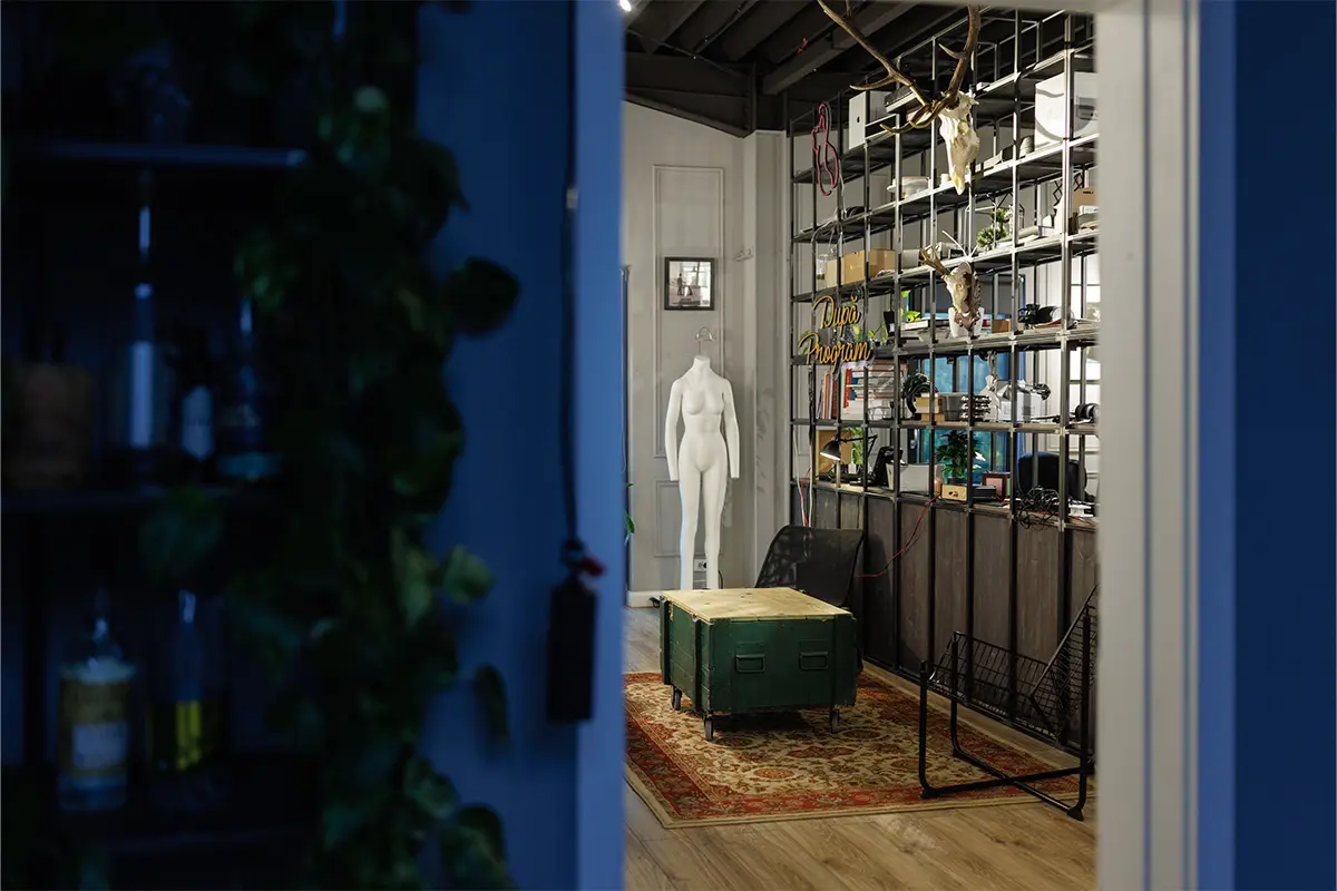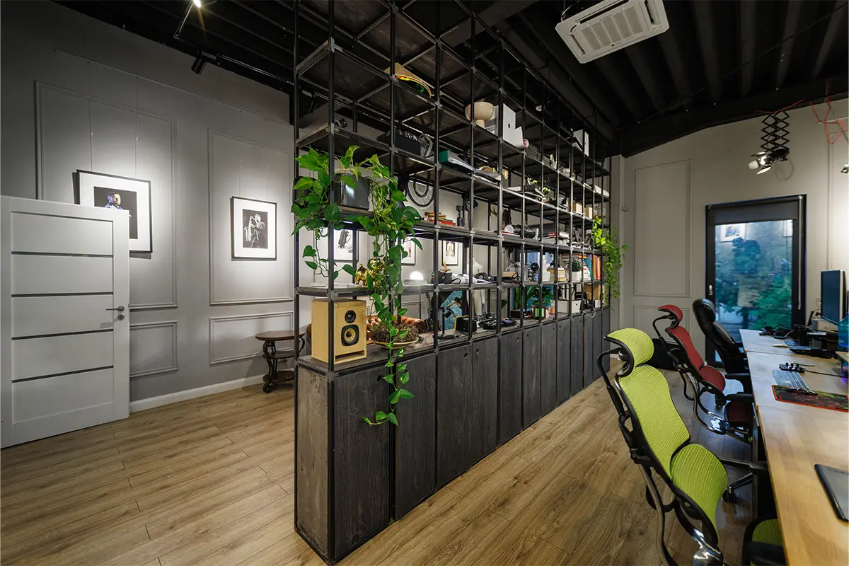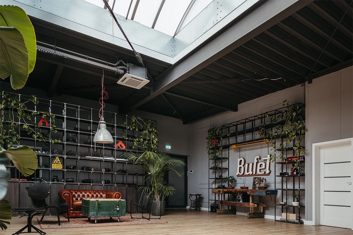 Studioul cu Bufet, LLUM Studio, este un spațiu pentru oameni cu idei, un spațiu de creație și socializare, mai ales pentru cei interesați de aria foto-video. Am rezonat din start cu oamenii de aici, ceea ce a făcut ca ideea generatoare să apară cât ai clipi. Tema a presupus amenajarea unui spațiu, acesta fiind compus dintr-o încăpere amplă, ce beneficiază și de lumină zenitală, studioul foto propriu zis și o a doua încăpere de lucru, pentru postprocesarea materialelor foto-video.