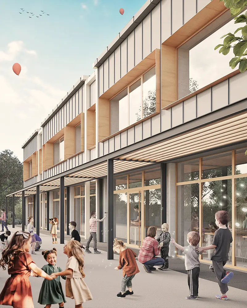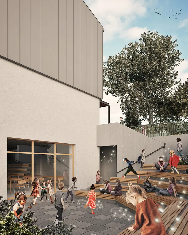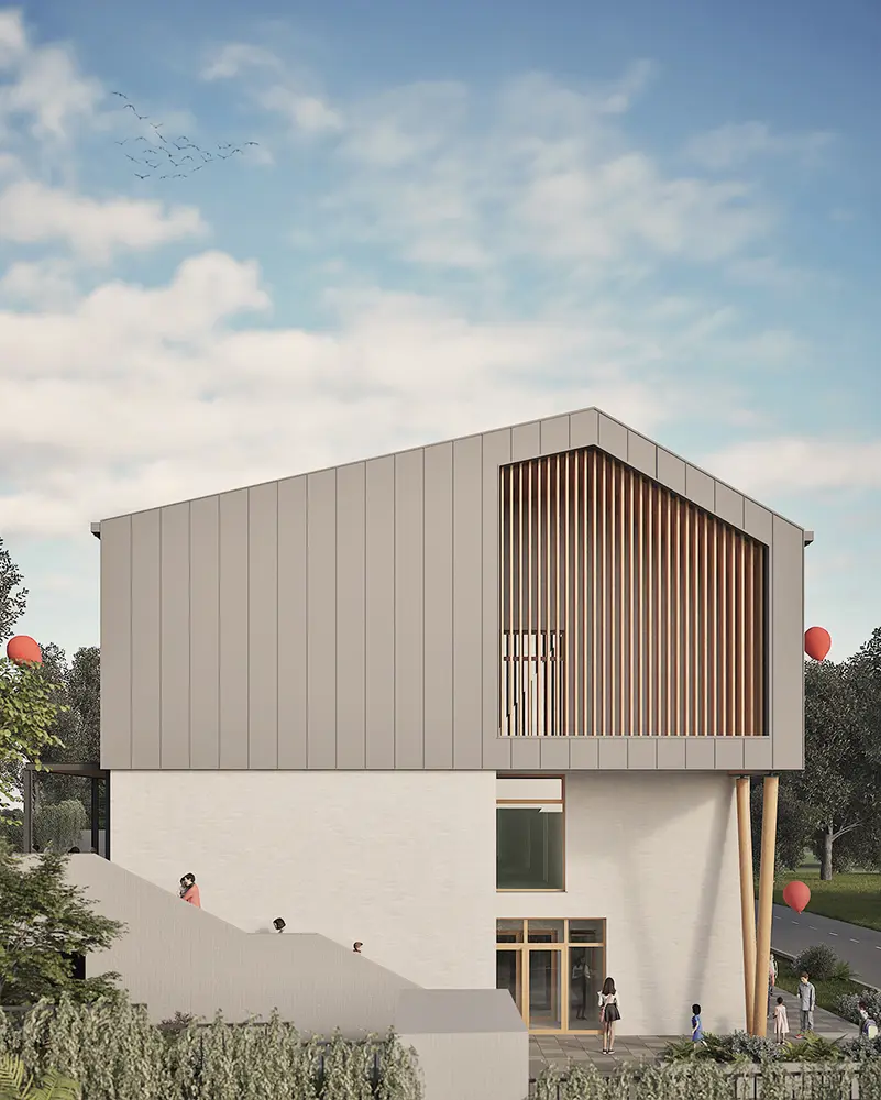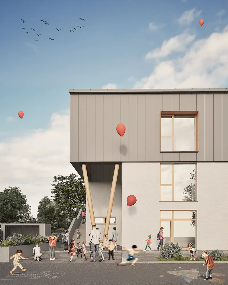 Compoziția de ”case alipite” este o metaforă vizuală ce trimite la imaginea satului tradițional, ce permite o integrare armonioasă în context, dar creează și o atmosferă familiară, caldă, în care copiii se pot simți ”acasă”. Realizată cu ajutorul meșterilor și muncitorilor locali, contribuie la susținerea comunității și la consolidarea legăturilor dintre spațiu și locuitorii săi.
